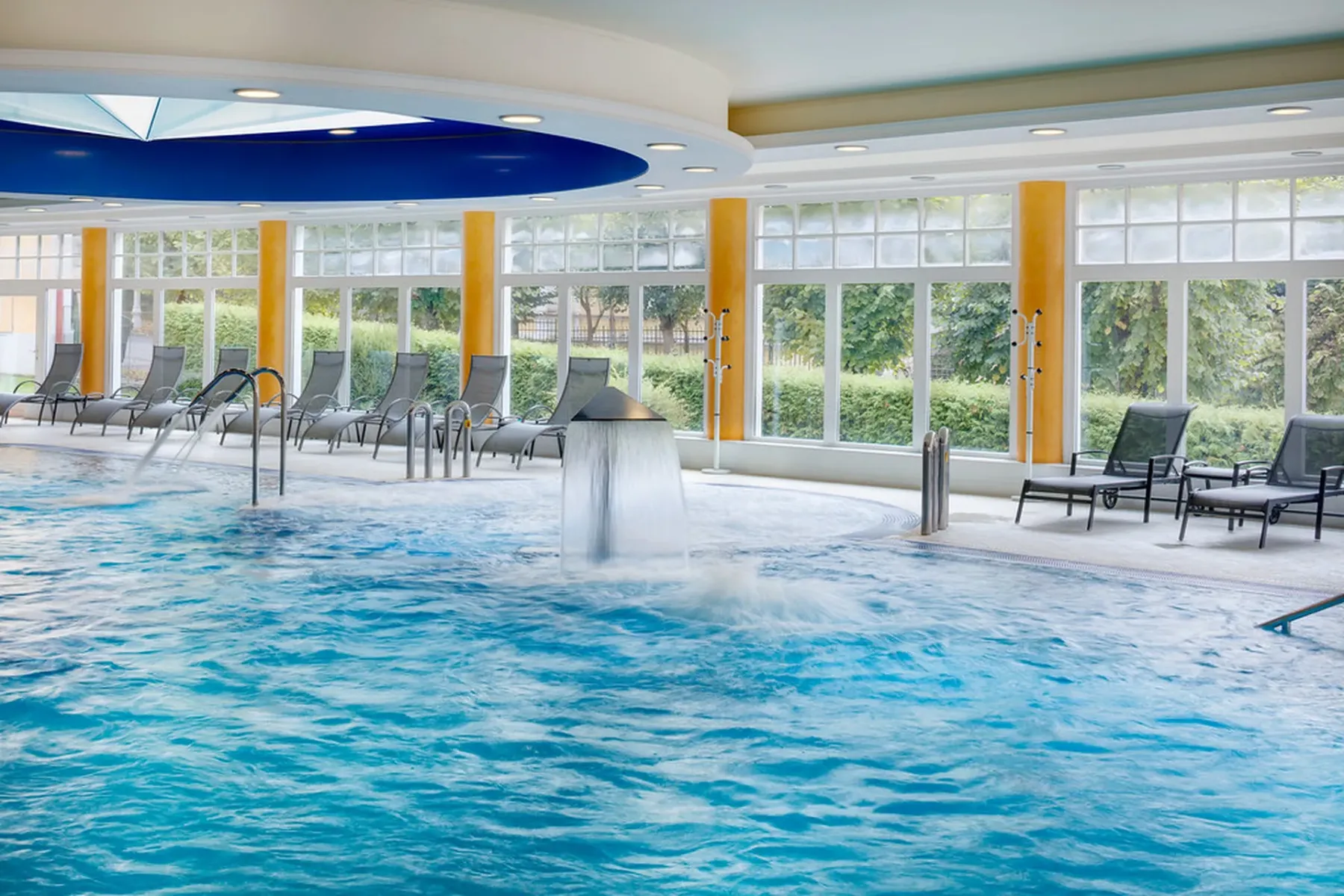 Guests enjoy the largest indoor hotel swimming pool in Mariánské Lázně, along with a full wellness center featuring a sauna complex and a modern therapy department .